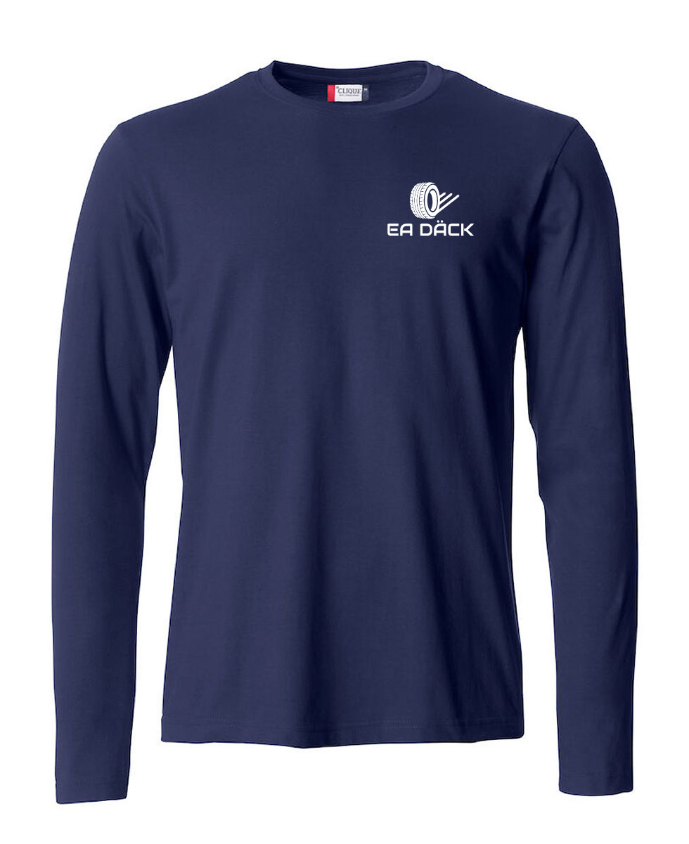 En basic t-shirt med lång ärm, passformen är modern och något smalare. Den ribbade halsen har elastan samt kantband baktill.